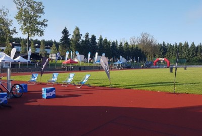 Angekommen im Ziel des 8. BIKE24 SachsenTrail powered by On